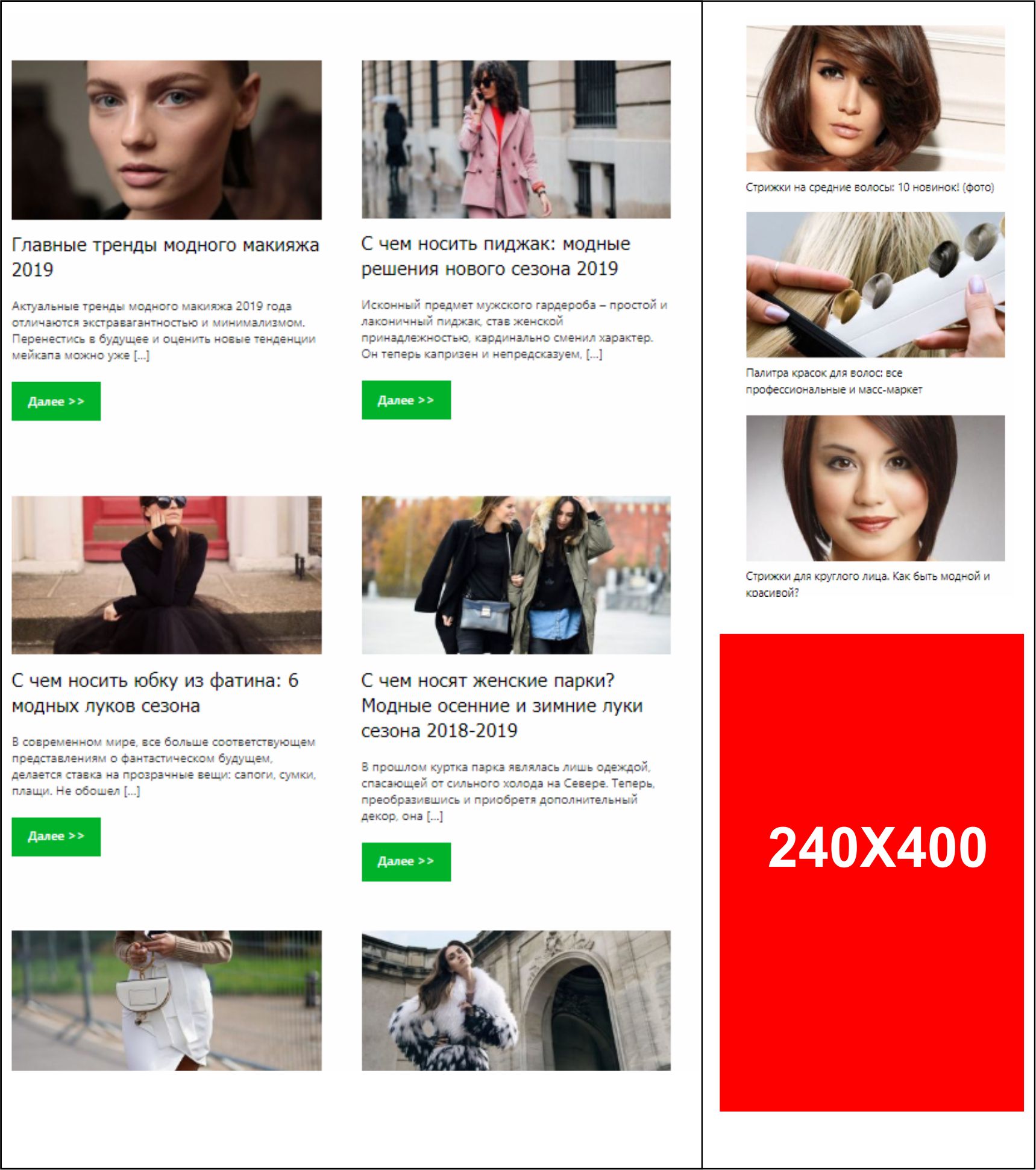 Сквозной «sticky» (движется при скроллинге) баннер, отображается на всех страницах сайта, размер 240Х400 px.